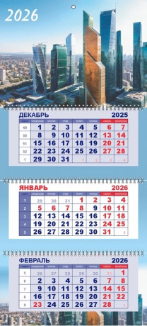 Календарь квартальный 330х720 мм. спираль 3бл. 2026 LAMARK Москва - Сити 91743/1/23