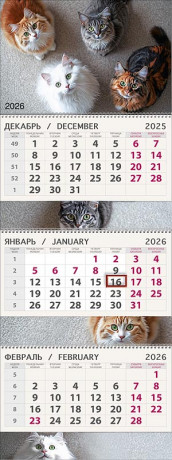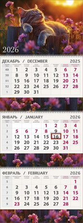 Календарь квартальный 305х675 гребень 3бл. 2026 Полином "Мяу-дзен" 13с14-307/1/20