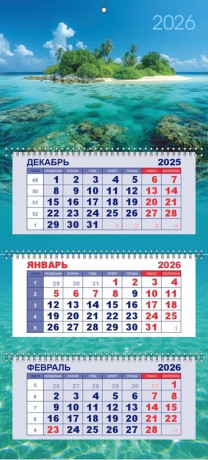 Календарь квартальный 292х650 мм. спираль 3бл. 2026 LAMARK Остров в океане 93075/1/23