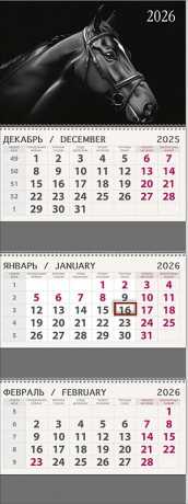 Календарь квартальный 292х650 мм. спираль 3бл. 2026 LAMARK Символ года-Год Лошади. Вороной91842/1/23