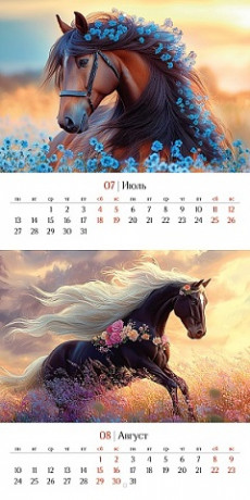 Календарь настенный перекидной А4 скоба 1бл. 2026 Hatber ЭКОНОМ Год Лошади 6Кнп4_34250/1/40