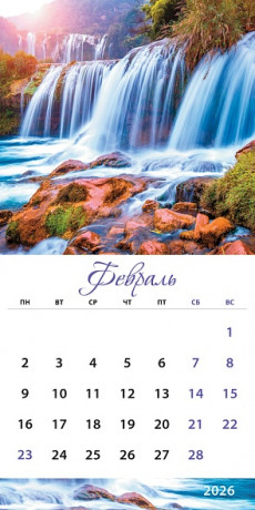 Календарь настенный перекидной 216х216мм. скоба 2026 Hatber Водопады 12Кнп5_34313/1/25