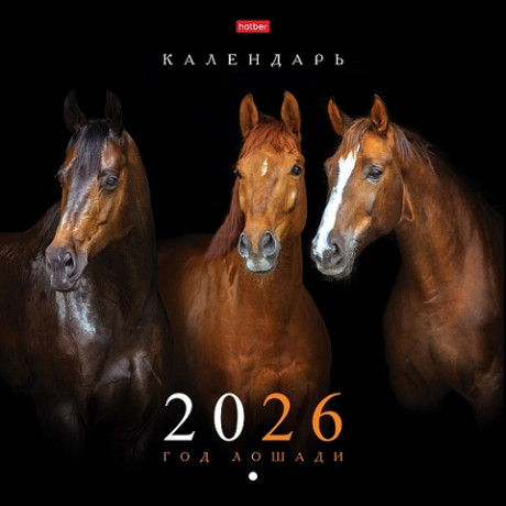 Календарь настенный перекидной А4 скоба 1бл. 2026 Hatber ЭКОНОМ Год Лошади 6Кнп4_34250/1/40