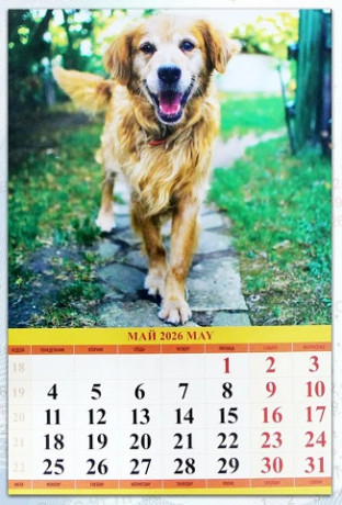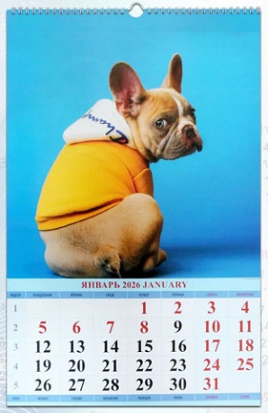 Настенный перекидной календарь на металлическом гребне с ригелем, формат 320х480 мм. Состоит из красочной обложки и подложки на мелованном картоне плотностью 225 г/м2, покрытых глянцевым УФ-лаком, которые скреплены металлическим гребнем с внутренним блоком (6 листов). Листы внутреннего блока - красочный слайд и крупная календарная сетка на каждый месяц с нумерацией недель на глянцевой мелованной бумаге плотностью 105 г/м.