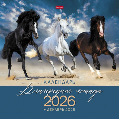 Календарь настенный перекидной 30х30см. скоба 2026 Hatber Благородные лошади 12Кнп4_34340/1/25