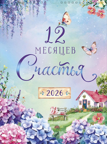 Календарь настен. перек. 290х390мм. спираль 1бл. 2026 Арт Дизайн 12 месяцев счастья 0613.240/1