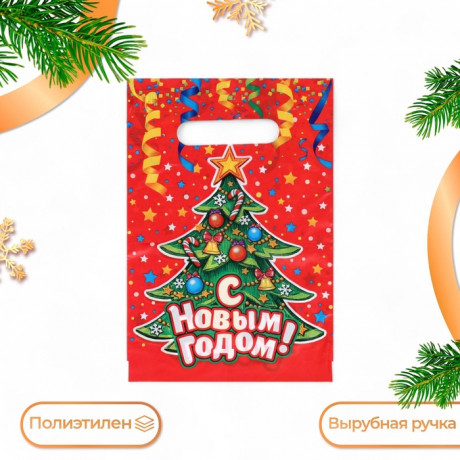 Пакет полиэтиленовый с петлевой ручкой "Ёлочка с подарками" 28х35 см. 50 мкм. 10645815/1/20