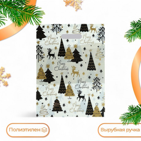Пакет полиэтиленовый с вырубной ручкой "Яркая елочка" 40х31 см. 60 мкм. 9827643/1/50