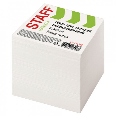 Блок для записей 90x90x90мм. белый, непроклеен СТАММ БЗ-999000/БЗ 52/1/12