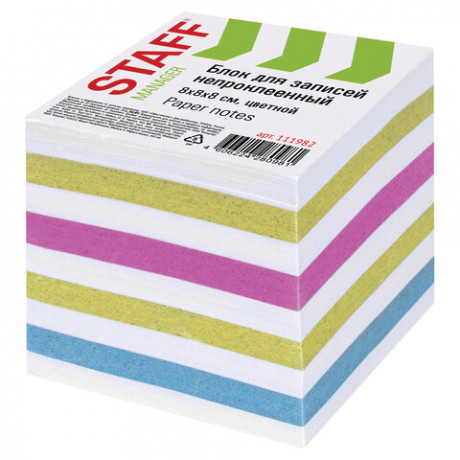 Блок для записей 8*8*4см ассорти, непроклеен СТАММ БЗ-884200/1/12
