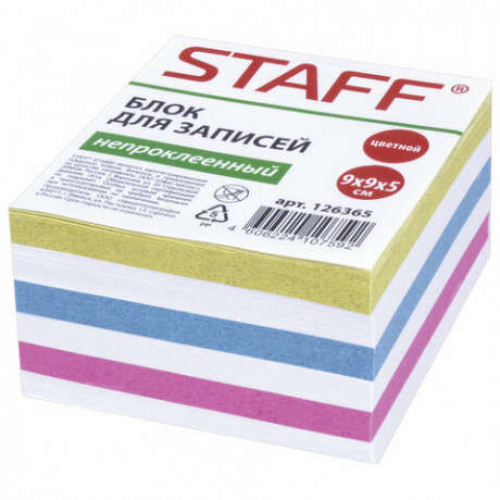 Блок для записей 90x90x90мм. ассорти, непроклеен СТАММ БЗ-999200/1/12