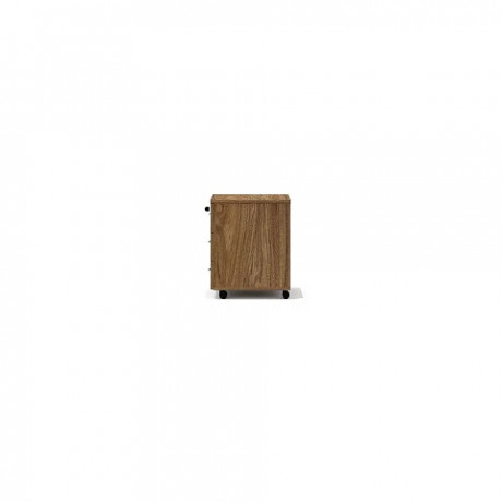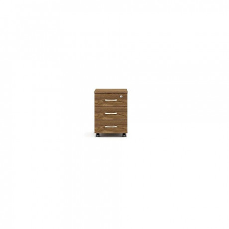 Толщина материала топа тумбы – 22 мм, корпус тумбы и фасады ящиков – 18 мм. Корпуса выдвижных ящиков выполнены из профилированного ДСП . Верхний ящик тумбы снабжен врезным замком. На днище тумбы установлены четыре мобильные колесные опоры d40 мм черного цвета.