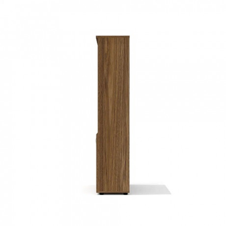 Толщина материала топа шкафа – 22 мм, корпус, полки и фасады – 18 мм. Задняя стенка шкафа выполнена из окрашенного ДВП цвета «Коричневый». Внутреннее пространство шкафа разделено четырьмя стационарными полками. Два нижних отделения закрыты двумя распашными фасадами.