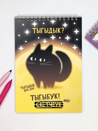 Альбом для рисования (Скетчпад) 195x195 мм, 80 л, блок - белый офсет 100 г/м², арт. 71628 ДЕВУШКА С КОТОМ /обложка полноцветная печать, твёрдый переплёт на гребне, матовая ламинация,
