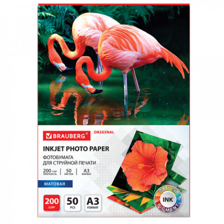 Фотобумага А3 1-стор. матовая 50л. 200гр. Brauberg ORIGINAL 363996/1/2/10