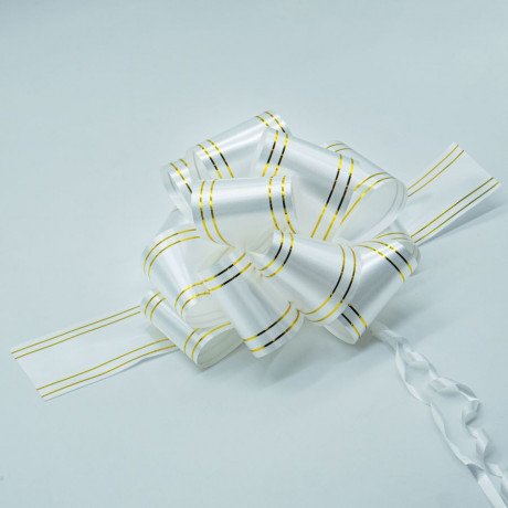 Бант-шар 5,0 см, золотая полоса, белый ч15673/1/50