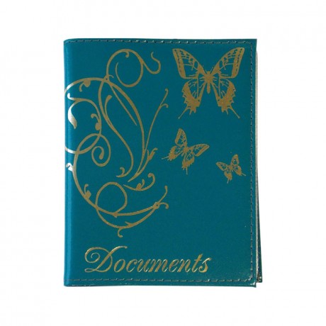 Обложка для автодокументов из кожи 13,2*18,6 "Кружево голубое" 10001/3
