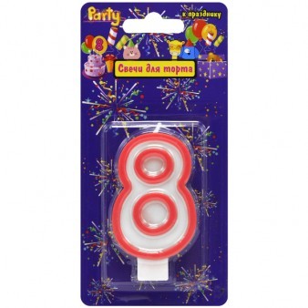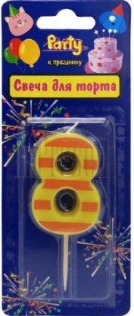 Свеча цифра 8, разноцветная, 3,4см, материал: парафин, API0312-8/500