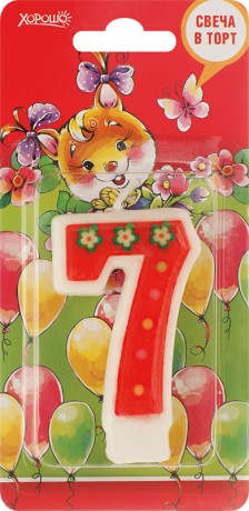 Свеча цифра 7, разноцветная, 4,8см, материал: парафин, API0314-7/576