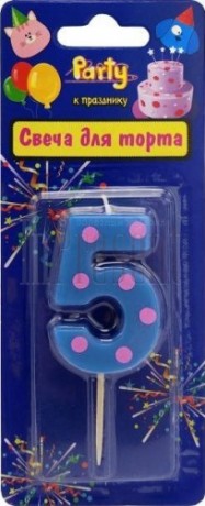 Свеча цифра 5, разноцветная, 7см, материал: парафин, API0318-5/600