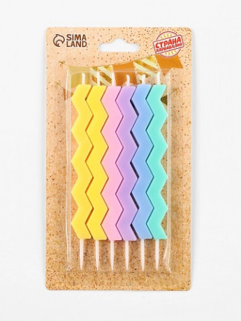 Свечи в торт "Зигзаг", 6 шт, разноцветные 10747863/1/288