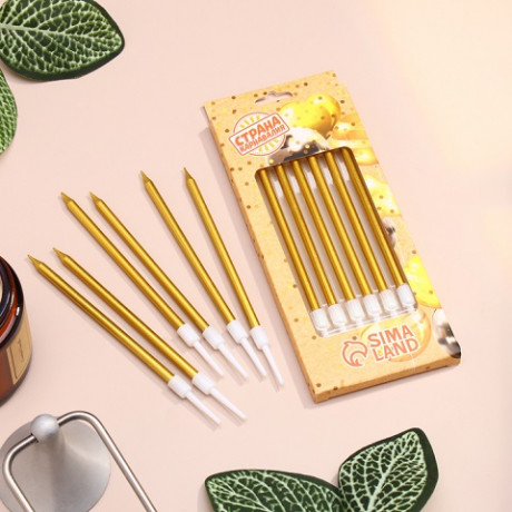 Свечи в торт коктейльные "Шайн", 6 шт, 10 см, золотой металлик 7582965/1/400