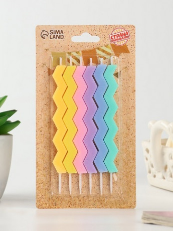 Свечи в торт "Зигзаг", 6 шт, разноцветные 10747863/1/288