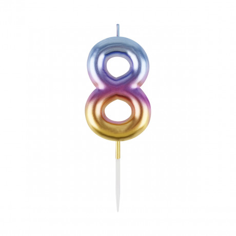 Свеча для торта с держателем MESHU "Цифра "8", 6см, градиент, блистер MS_57389/1/10