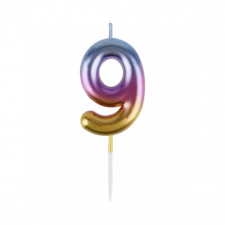 Свеча для торта с держателем MESHU "Цифра "9", 6см, градиент, блистер MS_57390/1/10