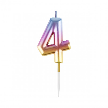 Свеча для торта с держателем MESHU "Цифра "4", 6см, градиент, блистер MS_57385/10