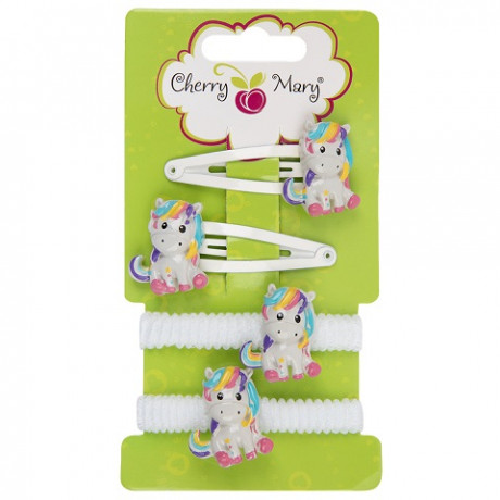 Набор резинок и заколок д/волос CHERRY MARY "Единороги" №02 4шт. белый S6208/1/80