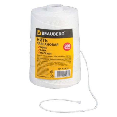 Нить лавсановая д/прошивки BRAUBERG, 1,5мм, 500м, бел., ЛШ 460,/601812/3/65