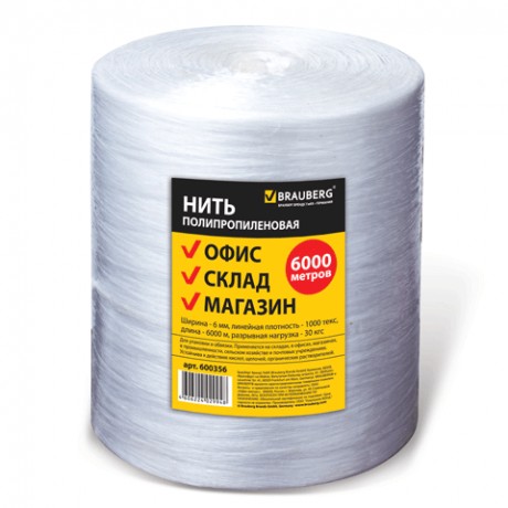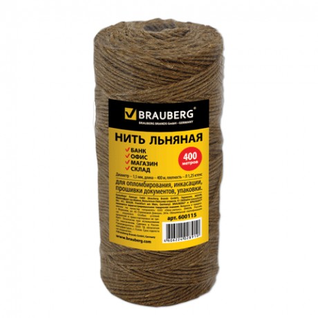 Нить д/прошивки документов Brauberg, полиамидная, диам. 1мм, дл.2380м. 600357/12#