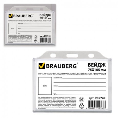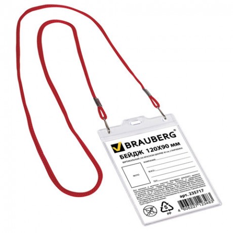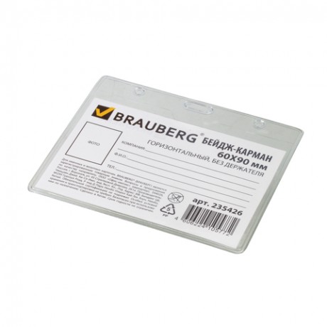 Бейдж BRAUBERG 120х90мм верт., без держателя, 235696/1/20