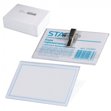 Нагрудная этикетка (бэйдж) 60*90мм. ClipStudio, с булавкой и клипом, 588-014/50/2000