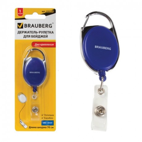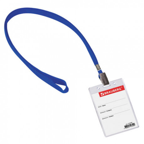 Лента д/бейджей BRAUBERG, 45 см, металлический клип, синяя, 235725/20