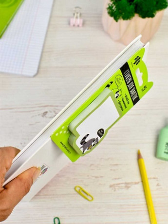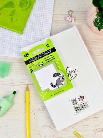 Стикеры для заметок бумажные, 64х62 мм, 60 шт., арт. 65169 / 25 ЕНОТ (материал: дизайнерская бумага 80 г/м², цвет: зелёный; кол-во цветов: 1, кол-во каждого цвета: 60, форма: фигурная, декор: полноцветная печать; наличие диспенсера: нет, особенности: фигурная вырубка; индивидуальная упаковка: подложка с европодвесом из мелованного картона + ПЭТ-пакет)