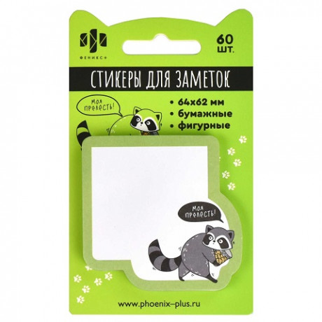 Стикеры для заметок бумажные 60 л. 64х62 мм, Феникс+ "ЕНОТ" 65169/1/25/100