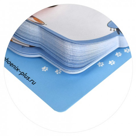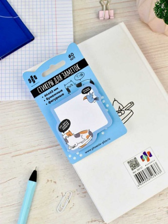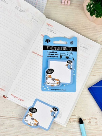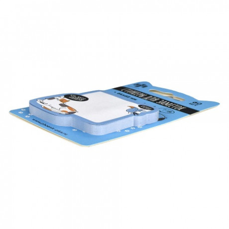 Стикеры для заметок бумажные, 64х62 мм, 60 шт., арт. 65168 / 25 КОТ (материал: дизайнерская бумага 80 г/м², цвет: голубой; кол-во цветов: 1, кол-во каждого цвета: 60, форма: фигурная, декор: полноцветная печать; наличие диспенсера: нет, особенности: фигурная вырубка; индивидуальная упаковка: подложка с европодвесом из мелованного картона + ПЭТ-пакет)