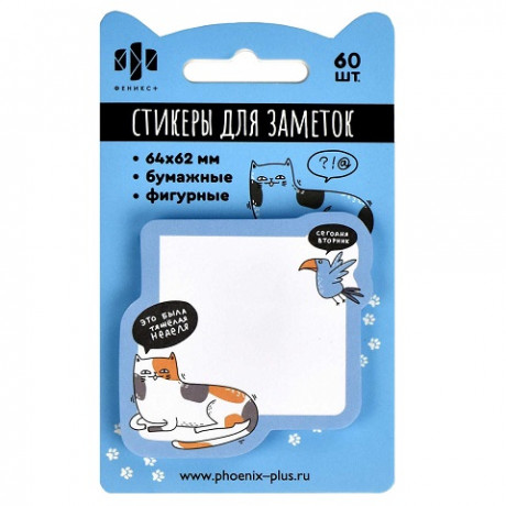 Стикеры для заметок бумажные 60 л. 64х62 мм, Феникс+ "КОТ" 65168/1/25/100