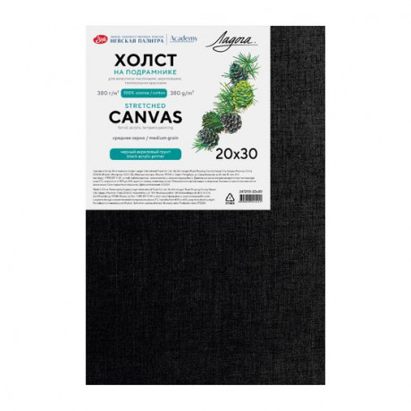 Холст грунтованный на подрамнике 20*30 100% лен 380г/м2 среднее зерно Ладога 2472113-20х30/1
