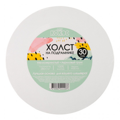Холст на подрамнике круглый 30см 100% хлопок 280г/м2 мелкое зерно КОКОС 216266/1/20