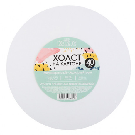 Холст на картоне круглый 40см 100% хлопок 280г/м2 мелкое зерно КОКОС 242242/1/50