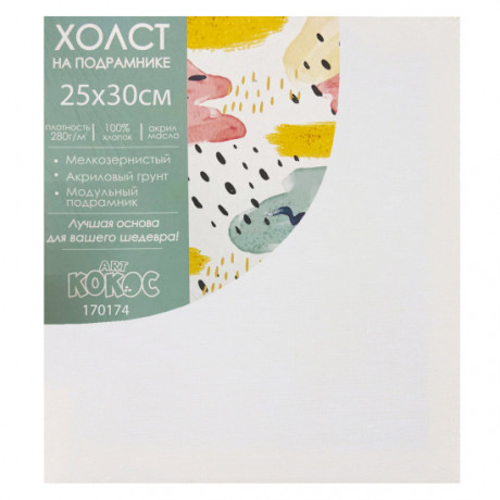 Холст на подрамнике 25*30 100% хлопок 280г/м2 мелкое зерно КОКОС 170174/1/80
