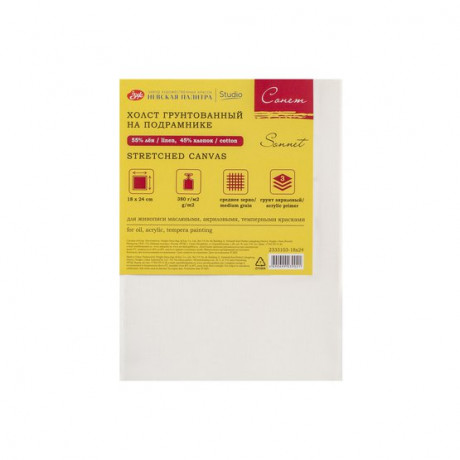 Холст на подрамнике 18*24 45% хлопок 55% лен 380г/м2 среднее зерно Сонет 2333103-18х24/1