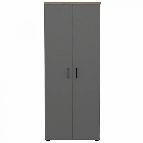 Кабинет руководителя Bruno сочетает удобство и функциональность элементов с практичностью и актуальностью материалов. Современный лаконичный облик кабинета подчеркивают актуальные древесные цвета каркасов и столешниц «Делиос», в сочетании с антрацитовыми фасадами тумб и шкафов. Дизайн и цветовые решения коллекции Bruno дают возможность комбинировать ее элементы с мебелью для персонала Line, поэтому вы сможете выполнить в едином стиле рабочее пространство всего офиса. Толщина материала топа и полок – 25 мм, остальных деталей корпуса – 18 мм, фасадов – 16 мм. Внутреннее пространство шкафа разделено перегородкой на две разноширинные секции. Левая секция шириной 460 мм снабжена стационарной полкой для головных уборов и выдвижной штангой для одежды. Правая секция шириной 284 мм снабжена четырьмя стационарными полками.
