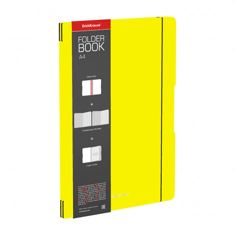 Тетрадь А4 48л клетка скоба пластиковая, ErichKrause FolderBook Neon жёлтый 56115/1/2