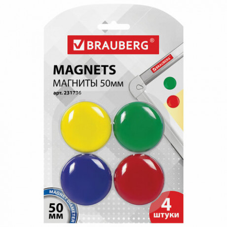 Магниты 40мм. 04шт. OfficeSpace, ассорти 256237/12