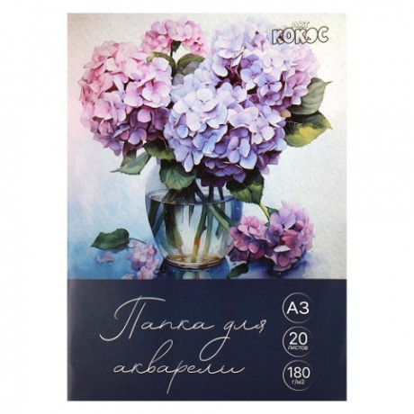 Папка художественная для акварели 180г/м А3 (297х420мм) 20л. Гортензия КОКОС 232190/1/10