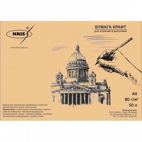 Крафт-бумага А3 50л. "KRIS" д/творчества 78-80г/м², БК 50/2130804/1/40